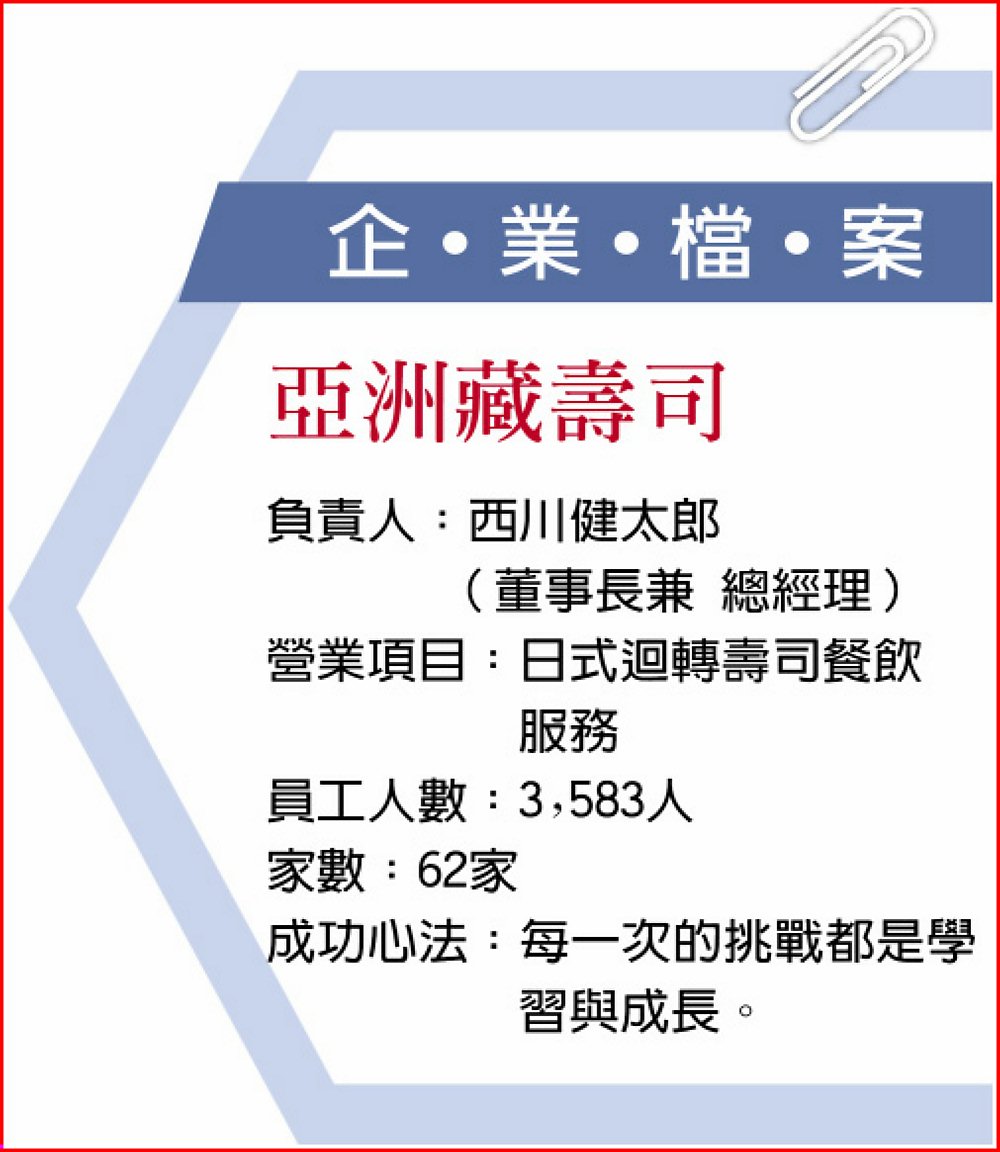 「每一個歡樂笑容,來自我們的心意。用家人般的心情,誠摯地接待,真誠地料理,在美味食物之外,創造與家人共度幸福回憶。」亞洲藏壽司董事長西川健太郎表示,亞洲藏壽司自2014年進入台灣市場,以歡樂為核心,日式服務文化,打造三大歡樂體驗:歡樂的美味、歡樂的服務、歡樂的扭蛋。