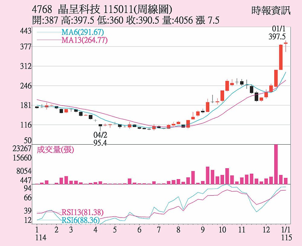 晶呈科(4768)周線圖