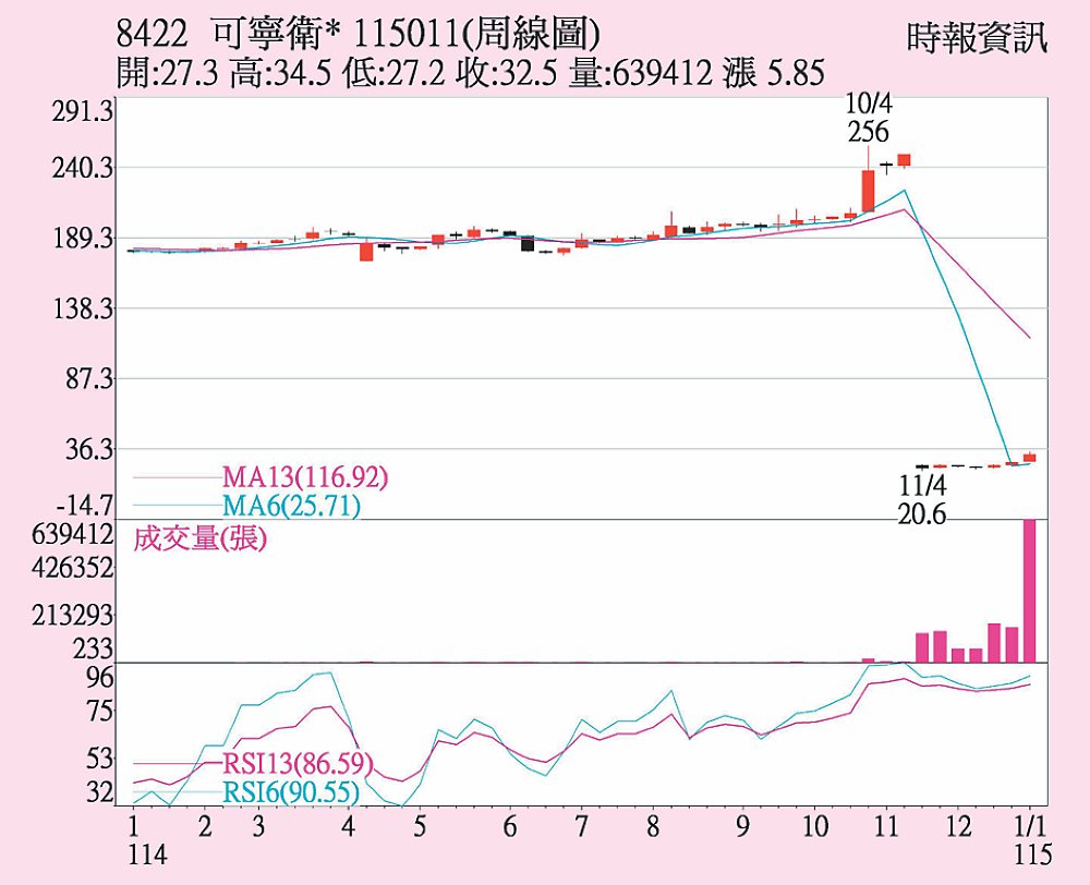 可寧衛(8422)受惠市場預期2026年營運將比2025年大幅成長,吸引中長線買盤逢低承接,上周股價在五日均線上下震盪走高。2日收盤32.5元。已站穩所有短均線之上。短期周線、月線及季線趨勢也都維持走高。量能快速放大,各短線技術指標有利多頭。短期股價可望持續震盪往上。