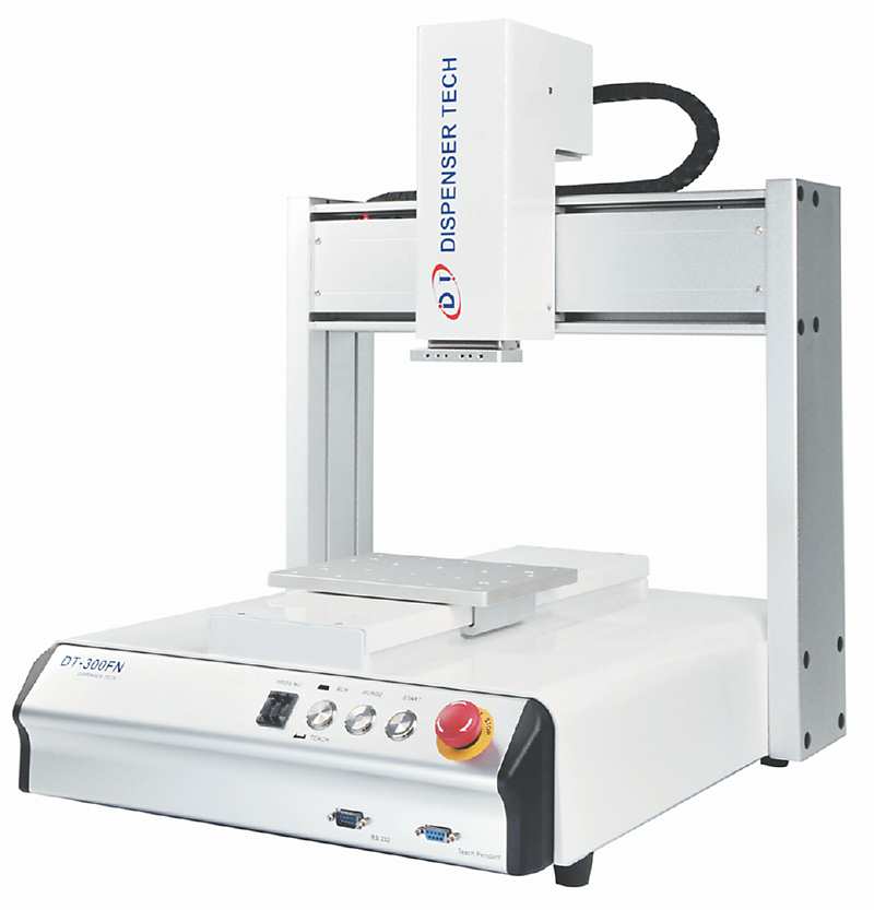 點膠科技長期耕耘產業智動化,推出自動視覺定位自動點膠機,透過電腦端操控軟體、直覺簡單的視窗操作介面,讓使用者能快速的在電腦螢幕上規劃定位點,可自動調整點膠路徑以防止放置物件在治具上的誤差。總經理陳致文表示,點膠科技現有產品包括泛用型自動點膠機、伺服螺桿自動點膠機、自動視覺點膠機、落地型自動視覺點膠機、三、六軸自動點膠機、龍門式自動點膠機、微電腦數位點膠機、微電腦出膠機、微電腦數位微壓出膠機、蠕動式出膠機、螺桿膠閥、回吸閥等,主力機種DT自動點膠機器人擁有5大特點:(1)PC base高規格設計加USB介面上傳下載程式容易。(2)可3D圓弧補間的控制系統解決各種空間的點膠路徑。(3)具256組程式組別記憶功能符合多樣產品種類使用。(4)可分外接自動化原件成為多功能生產設備。(5)單機即可操作安裝最簡易。
