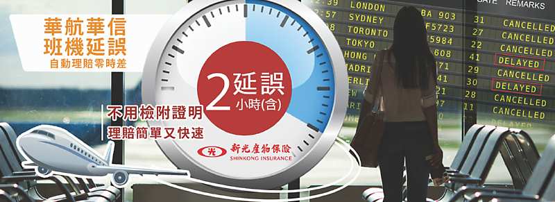 新光產物表示,即日起至6月30日止網路投保加碼提高班機延誤理賠金額,只要符合班機延誤條件達2小時以上就可申請2,000元理賠金,4小時以上6,000元,6小時以上10,000元,單次理賠最高1萬元。