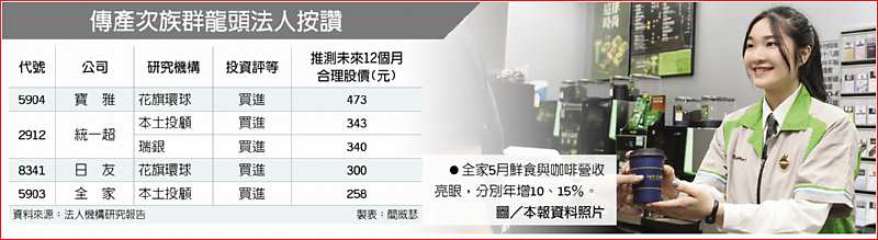 投顧法人針對全家指出,全家5月鮮食與咖啡營收分別年增10、15%,加上持續建立會員制,至第一季底會員人數已達900萬人,貢獻全家便利商店營收35%。