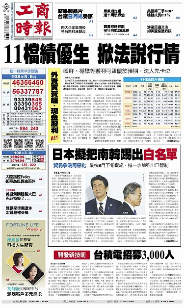 統一發票中獎號碼 開發新技術 台積電招募3,000人 貿易爭端再惡化 日本擬把南韓踢出白名單 11檔績優生 掀法說行情