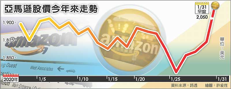 亞馬遜今年第一季財測也超出華爾街期待,預估營收介於690億到730億美元。
