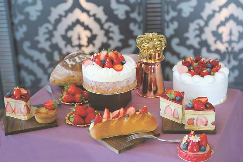 「雪藏城堡」則是以雪白化口的鮮奶油為基底,由正上方俯視如公主的澎裙般蓬鬆柔軟,頂層則以新鮮草莓圍成花圈,再以金箔點綴,多了一些奢華感,看起來香甜可口。