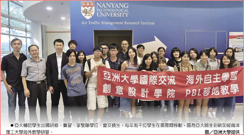 亞洲大學向教育部申請補助學生出國研習「學海築夢」四項系列,以及新南向交流等共五項計畫,今年共獲教育部補助2,600多萬元;學海系列將選送450位學生出國;新南向交流部分,也會有近千位外籍生來亞大研習,國際移動力強!