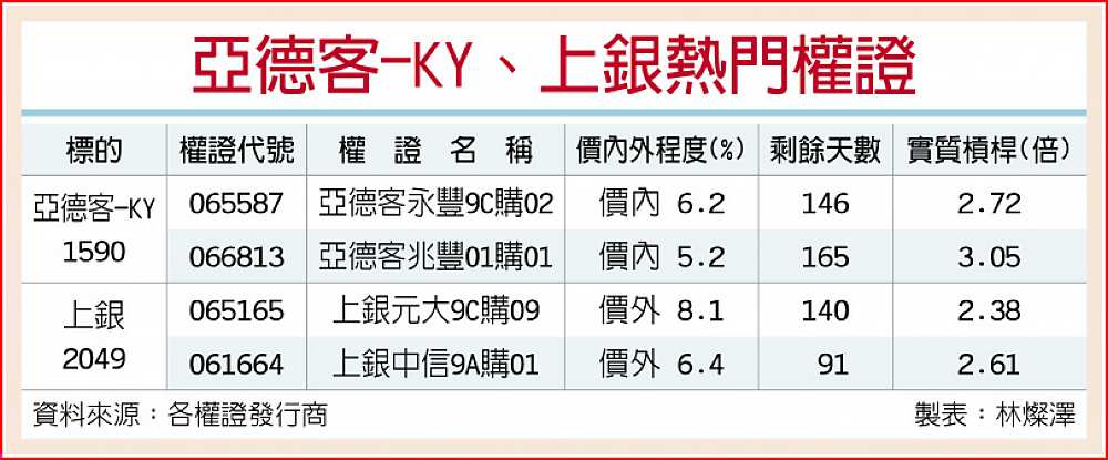 台股延續近期高檔震盪,30日台積電(2330)強勢帶動指數震盪收高12,722.92點;亞德客-KY(1590)、上銀(2049)兩檔工具機股也呈現上揚行情,亞德客-KY股價收高631元、大漲7.86%,上銀收盤價312.5元、漲幅1.79%,帶動相關認購權證交投活絡。