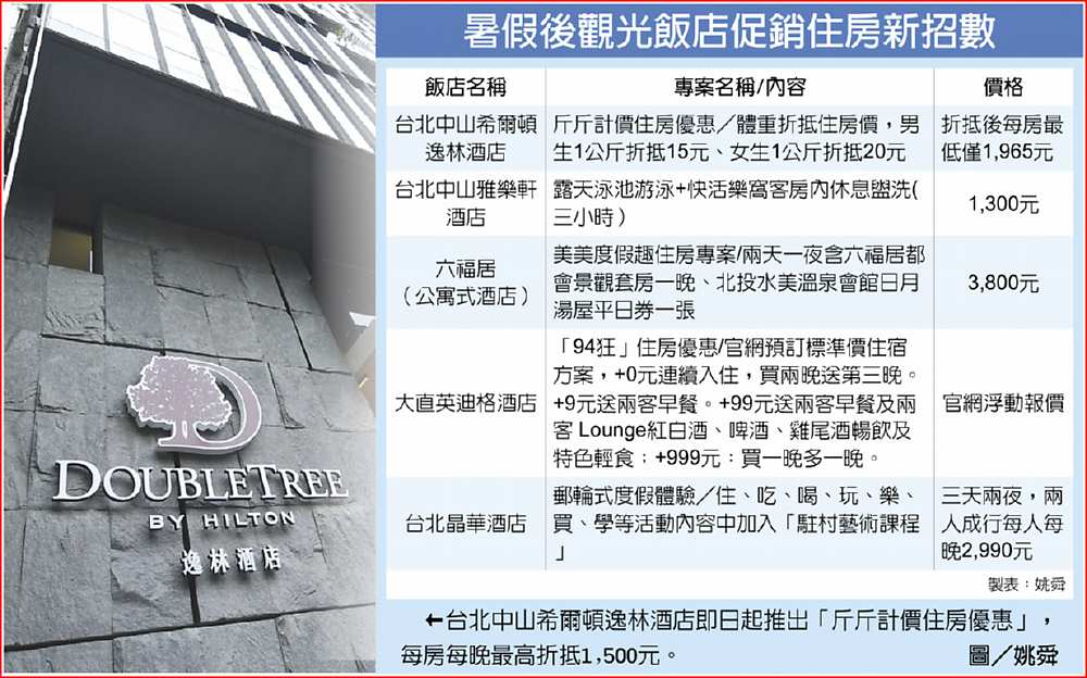 暑假即將結束,政府對業者的營運補貼、及對消費者的安心旅遊補助均將告一段落,包括休閒度假飯店在內的觀光飯店憂心,因報復性消費帶動的旅遊熱潮不再,紛紛各出「奇招」,以不同名目優惠促銷搶救住房率,掀起新一波市場大戰。