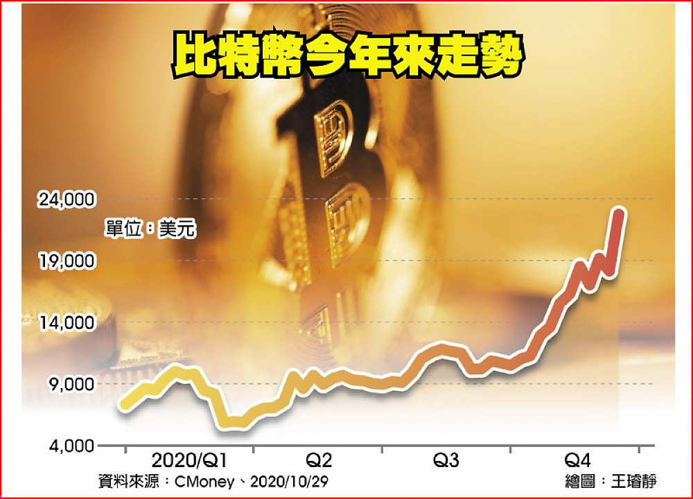近日大型投資機構相繼投入加密通貨市場,就連貝萊德(BlackRock)高層都預言比特幣將取代黃金,激勵比特幣價格屢創新高,繼16日首度衝破2萬美元大關後,17日盤中續漲至23,774美元,再創歷史新高。