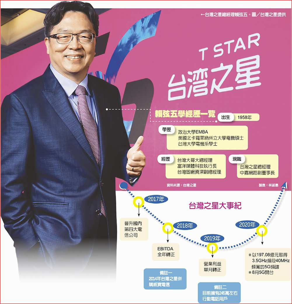 5G時代來臨,繼遠傳投資入股亞太電信,台灣之星與台灣大、遠傳甚至中華電之間的競合關係,將牽動國內電信版圖新一波洗牌。台灣之星總經理賴弦五表示,與同業合作採取開放態度,至於時間點,他認為一年或一年半之內將明朗化,並直言台灣之星的合作動向,將牽動電信生態走向一大兩中一小、一大兩中,或兩大一中的新賽局。以下是專訪賴弦五紀要。