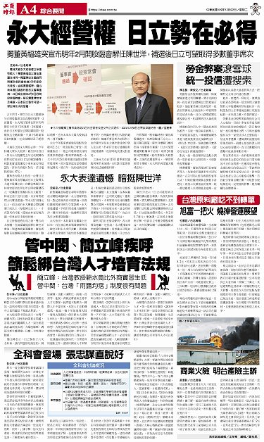 登入會員後可閱讀工商時報每日A1-A5版新聞