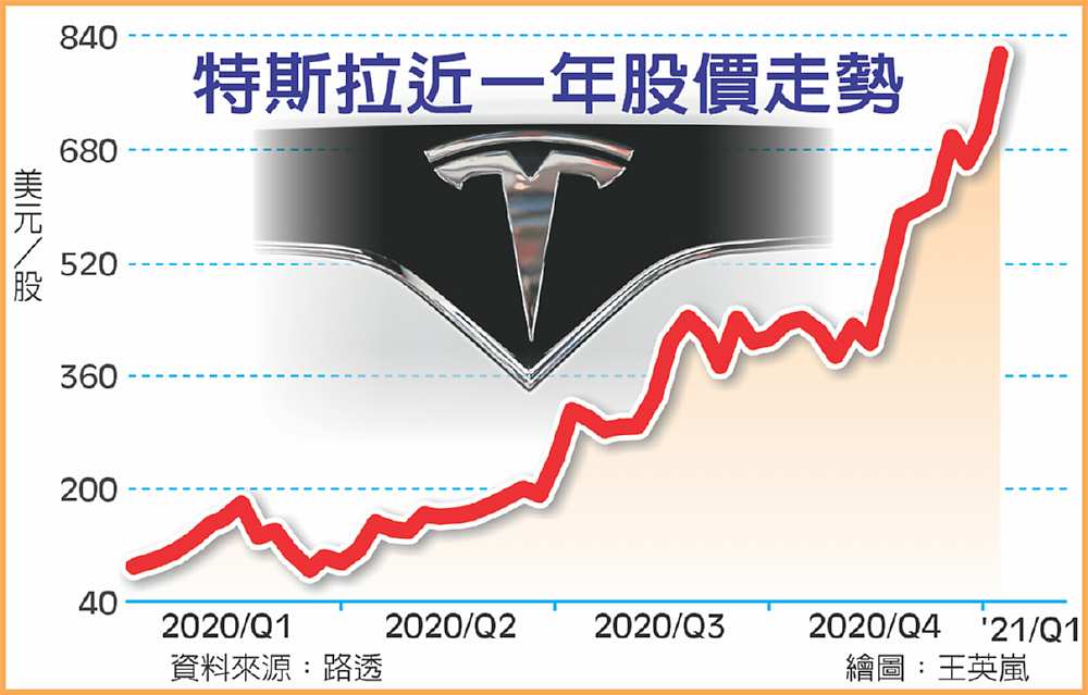 穆斯克的個人身家暴漲,歸功於特斯拉股價在過去一年狂飆七倍以上,這位科技狂人持有20%(約2.41億股)的特斯拉股權。特斯拉亦超越日本豐田成為全球市值最高的車廠,儘管產量遠不及豐田、福斯、通用等對手。