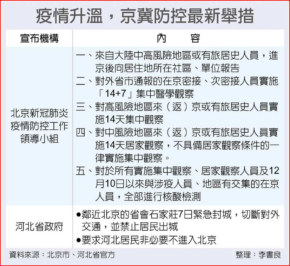 時隔近一年,大陸再次展開防疫保衛戰。大陸此波疫情頻發始於2020年12月初,由東北黑龍江省一路往南經遼寧、河北向北京蔓延,2021年開年,河北省疫情急拉警報,因北京和天津地理位置上被河北省包圍,省會石家莊距北京不到300公里,儘管石家莊、邢台均緊急封城,北京防疫上仍處於高度戒備狀態。