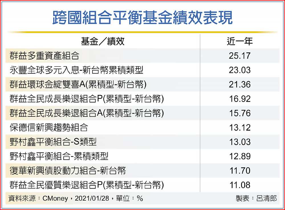 全球疫情警報未除及疫苗疑慮,且全球股市面臨獲利了結壓力,近期金融市場震盪再現,VIX指數更一度飆升至三個多月以來高位,資金輪動快速之下,投資操作難度倍增,布局跨資產、跨市場配置的跨國組合平衡基金,有利經濟復甦成長後,獲多元收益來源,並平衡投資組合風險穩健因應。