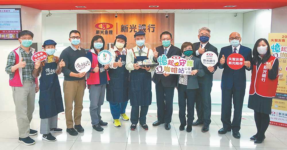 為讓輕度失智症長者能有較多社會參與的機會,以維持他們正常的人際關係與生活功能,新光銀行今年3月起與「臺北市中正區健康服務中心」合作舉辦「憶起守護咖啡站」公益行動,於所屬中正分行、城內分行之特定日期上午10點至12點,邀請輕度失智症長者及照顧者,一起來行擔任樂齡服務員及一日「高年級實習生」,藉由遞上一杯咖啡供來行辦理業務之民眾免費享用,重拾起職場回憶。
