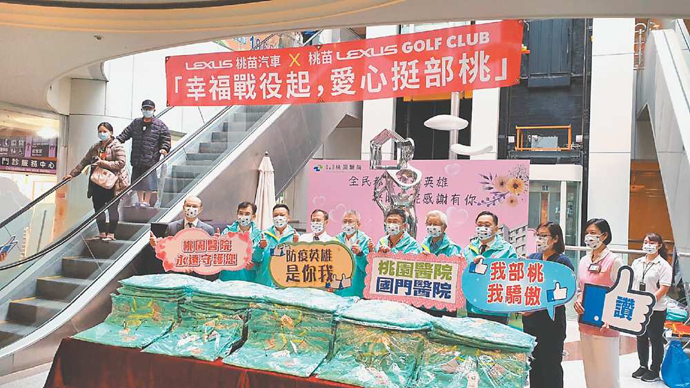 LEXUS桃苗汽車為感謝部立桃園醫院長期的防疫辛勞,由桃苗汽車張喬柏總經理及桃苗LEXUS GOLF CLUB符玉竹會長,發起「幸福戰役起,愛心挺部桃」樂捐活動,公司同仁及球隊會員皆熱烈響應,並將所有募資所得全數捐出,購入140件連帽防風外套於日前贈予部立桃園醫院急診醫學部人員,提供急診室醫護人員於深夜或凌晨通勤時保暖,盼能以此舉來鼓勵醫護人員防疫辛勞。