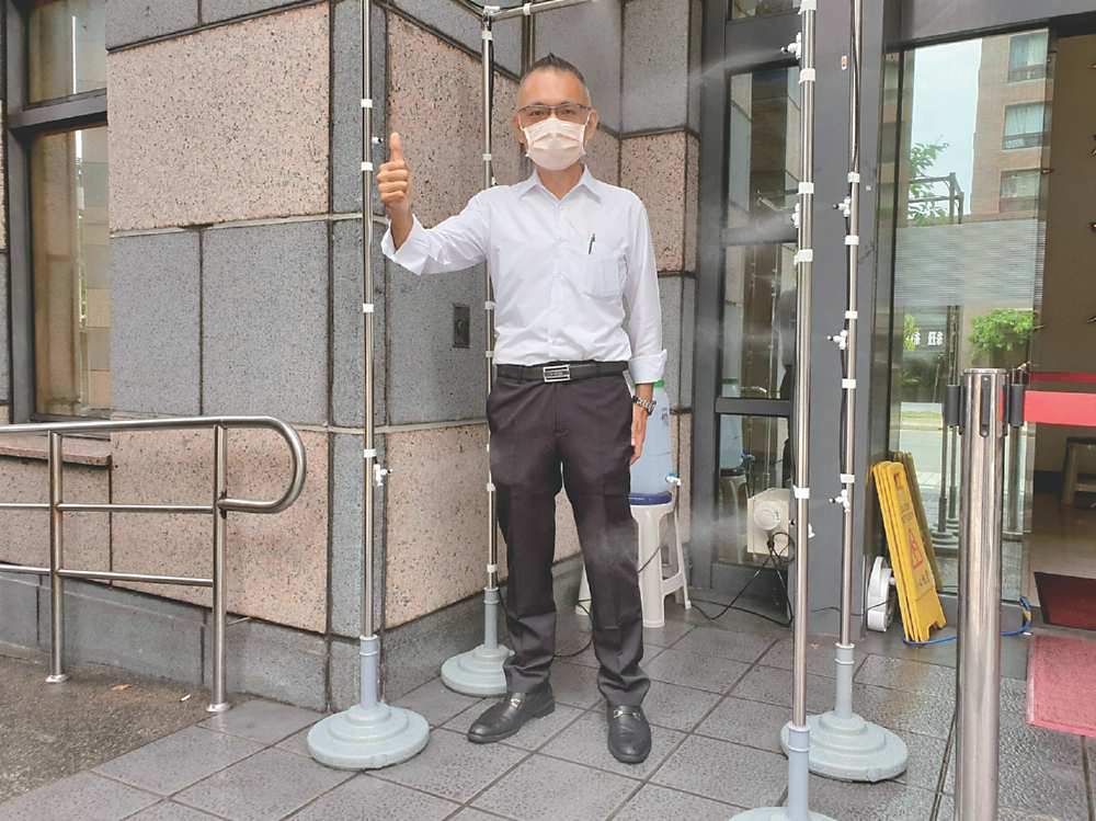 ●宏明建設公司董事長陳啓明出資為內湖分局和轄下9派出所安裝消毒滅菌門。圖/業者提供