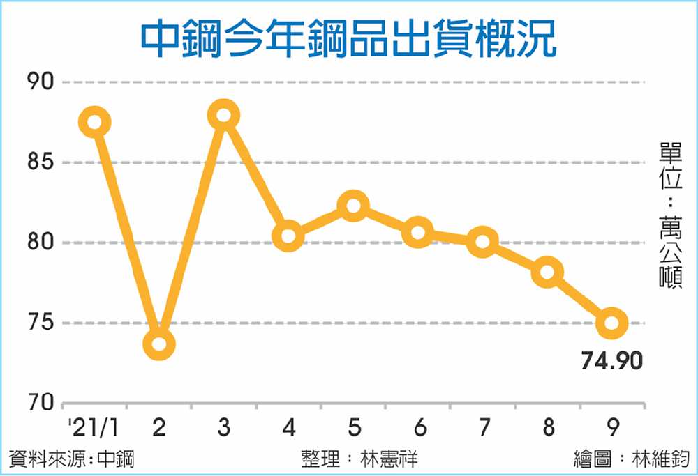 受到國內外港口塞港與公司設備定修影響,中鋼(2002)與旗下中龍鋼鐵9月份出貨達到103.7萬公噸,較規畫目標量減少4萬公噸,其中中鋼單月出貨量74.9萬公噸,創2021年來單月次低。中鋼表示,伴隨市場進入需求旺季,加上第四季接單暢旺,可望順利達標,以迎接市場遞延榮景的到來。