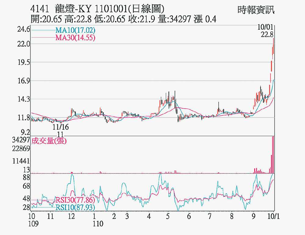 龍燈-KY(4141)受惠全球疫情趨緩民生消費恢復常態,糧食需求大增,帶動第二季營運轉虧為盈,累計上半年每股淨損縮小至0.25元。由於營運漸入佳境,第四季進入冬季為傳統營運旺季,單季營收為占全年最重要的一季,占比約35%,預計第四季單季獲利創高峰可以期待 。