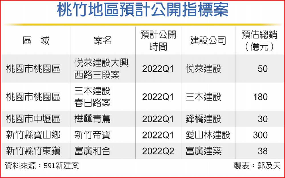 591新建案指出,這幾年桃竹房市的剛性需求猛烈,前景雙雙看好,桃園重劃區除了吸引本地客層,因價格優勢吸引雙北買盤湧進,強化建商推案意願。新竹在科技業景氣暢旺下,交易熱區自新竹東區及竹北向外擴張。
