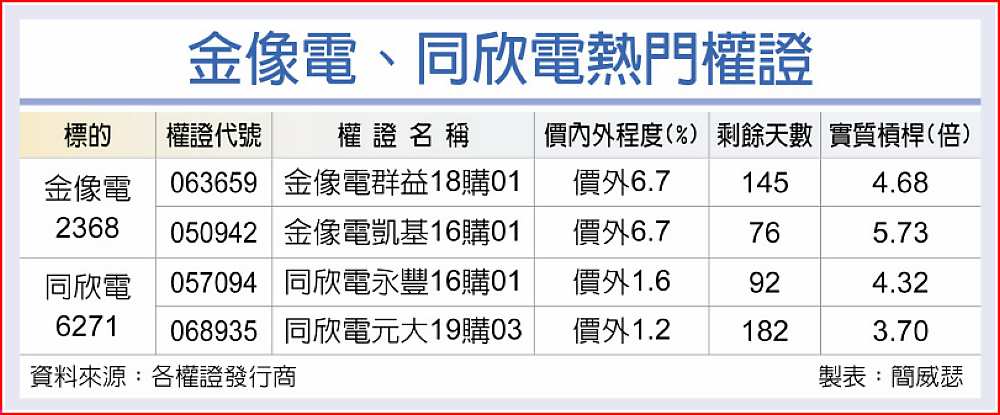 台股步步收復失土,電子熱門股積極反彈功不可沒,像是金像電(2368)、同欣電(6271)股價正伺機挑戰前波高點,富邦投顧看好金像電受惠伺服器訂單需求強勁,推測合理股價上看97元,金控旗下投顧則點名同欣電受惠車用CIS推升營運達高峰,亦給予「買進」投資評等。