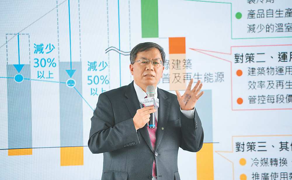 林鴻志表示,產品減排的做法就是提高產品能效,開發及採用全球暖化影響較低的製冷劑,產品自生產起整個生命週期內減少溫室氣體的排放;為達成運用解決方案減排,對建築物運用能源管理,提升能源效率及再生能源系統達到減排,並管控每段價值鏈的減排量;在其他方案減排則更多元,包括冷媒轉換、回收及再生、推廣使用熱泵回收廢熱、開發可再生能源事業、植栽護森林。