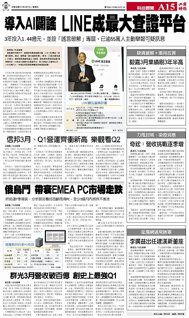 登入會員後可閱讀工商時報每日A1-A5版新聞
