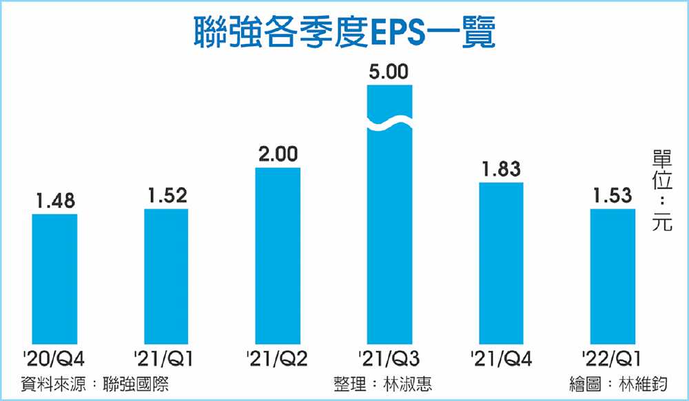 聯強第一季毛利42.8億元,營業費用率1.97%,為連續兩季低於2%,同時也是上半年度首次單季低於2%,使得營業淨利率保持在2.28%的水準,營業淨利則達同期新高的22.9億元。稅前淨利率3.22%、稅後淨利率2.52%同樣保持在高水準,稅前淨利32.4億元與稅後淨利25.4億元,更分別創下連八季與連六季同期新高。每股盈餘1.53元。