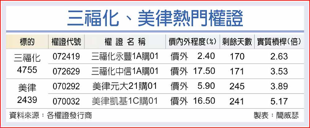 台股歷經4月大跌,5月瞄準反彈,台股尖兵不落人後,金控旗下投顧指出,三福化(4755)耕耘四甲基氫氧化銨(TMAH)將逐漸收成,初評「買進」,推測合理股價240元,潛在漲幅逼近四成。同時看好美律(2439)毛利率回升速度優於預期,調升目標價至105元。