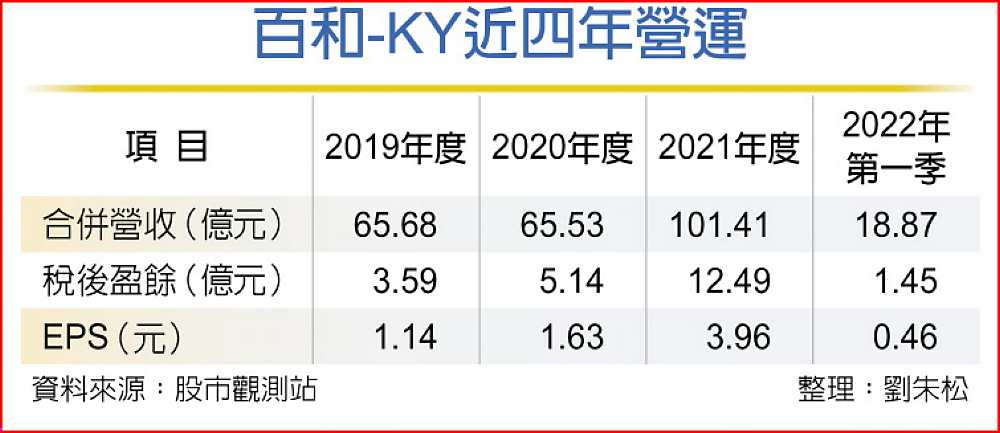 百和-KY(8404)預計下半年調漲價格,幅度逾一成,有利營運增溫;此外,公司正籌劃第二家公司上市案-無錫百和在上海A股的上市案,預定明年5月送件,預估最快明年底可望通過。