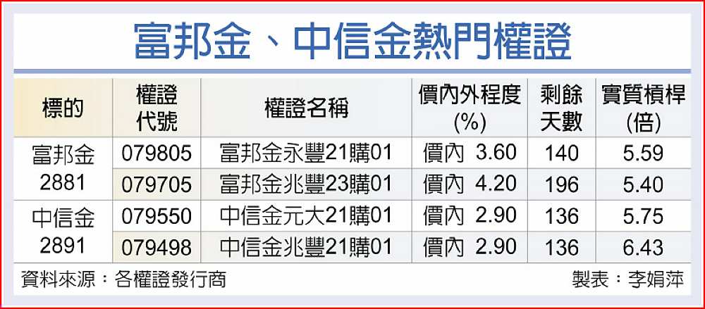 金控股富邦金(2881)及中信金(2891)股價表現攻上季線後,近期雙雙拉回整理,22日股價分別下挫2%、1.02%,收在58.8元、24.35元。