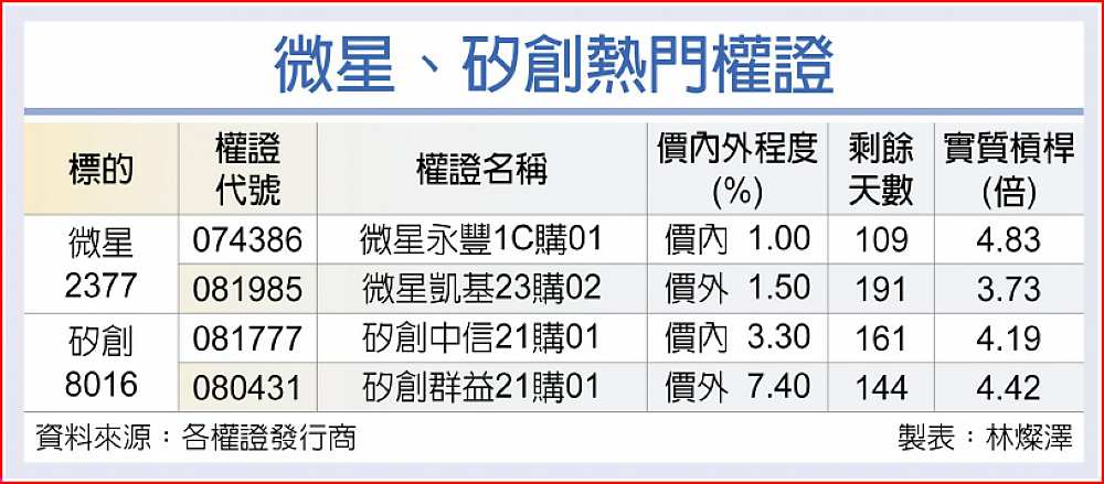 受美股拉回及外資擴大賣超影響,22日台股開低走弱收15,245.14點、跌幅1.06%。微星(2377)、矽創(8016)兩檔電子股逆勢上揚行情,微星收盤價117.5元、上漲1.73%,矽創股價收高188元、漲幅4.74%,帶動相關認購權證交投活絡。