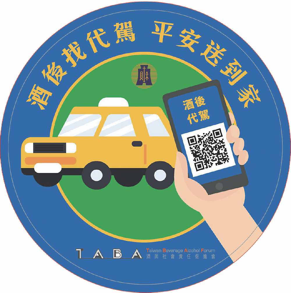 有鑑於酒後代駕服務尚未為民眾普遍運用,酒類業者為善盡企業責任長期關注酒駕防制,並響應酒駕防制之宣導工作,積極配合政府政策,協助推廣「酒後代駕」政策相關事宜。由台灣酒類飲料協會(TABA)、酒與社會責任促進會(TBAF)印製酒後代駕推廣貼紙5萬張(左圖/TBAF提供),即日起在全國店家協助下發放給購買酒品民眾,一起共同推動「酒後代駕」普遍化,為降低酒駕肇事與推動企業社會公益努力。 禁止酒駕 飲酒過量 有礙健康