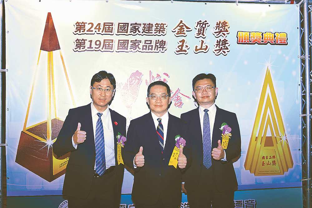 第19屆國家品牌玉山獎19日頒獎,第一金證券榮獲三項大獎,包括「傑出企業」,及「第一金麻吉」APP、「第一金權證」兩項最佳產品,頒獎典禮由該公司董事長陳致全、數位發展事業群副總經理吳泳文及資產管理事業群副總經理潘俊賢出席領獎。