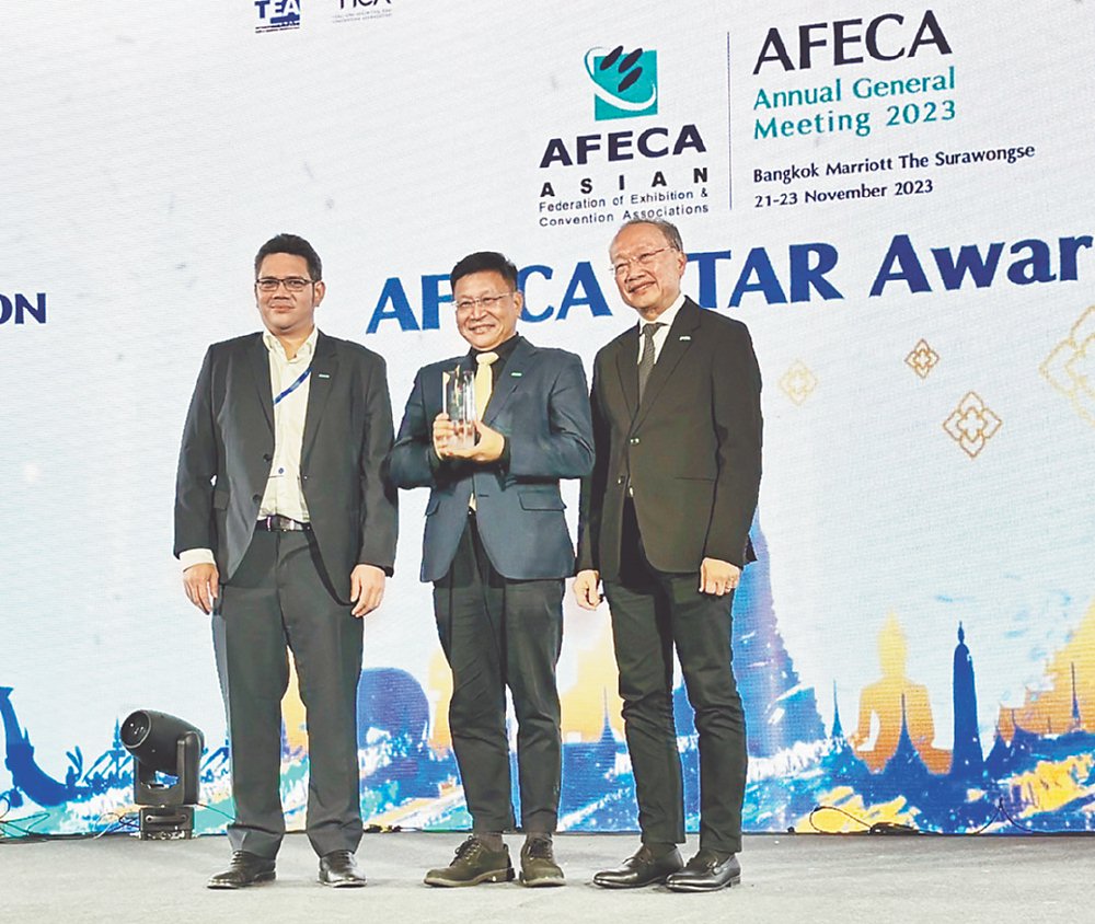 亞洲展覽會議協會聯盟(AFECA)於日前在泰國曼谷舉行2023年年會,我國由展覽會議公會(TECA)理事長邱揮立與經濟部國際貿易署組長楊佳憲,率展昭、滿力、高雄市全球會展推廣協會等會展業者參與,分享台灣會展趨勢,並以影片介紹台灣會展產業。貿易署組長楊佳憲指出,台灣會展活動在國際上非常有競爭力,歡迎各國業者前來觀展與參展。