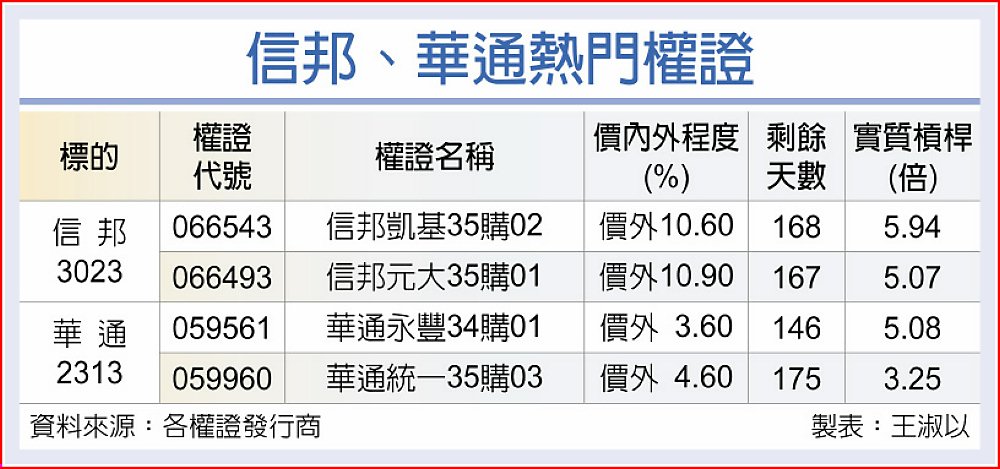 近期信邦(3023)、華通(2313)陸續召開法說會,法人認為信邦長期投資價值浮現,華通營運谷底已過,其中2024年低軌衛星、手持式裝置、AI伺服器三大領域皆有明顯動能。