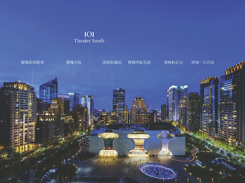 坐落於國家歌劇院南向,擁有市政北二路101號的燙金門牌,就如寶輝「101 Theater South」,他的名字即描繪了歌劇院為鄰的珍貴地址,見名更顯尊貴,絕佳地段出門數步即享世界九大地標「台中國家歌劇院」繁華聚落,回首即擁夏綠地雙十園道與秋紅谷公園。繼傲視中臺灣超豪宅「寶輝秋紅谷」後,寶輝建設暌違10年於七期歌劇院核心,又一扛鼎最新鉅作。
