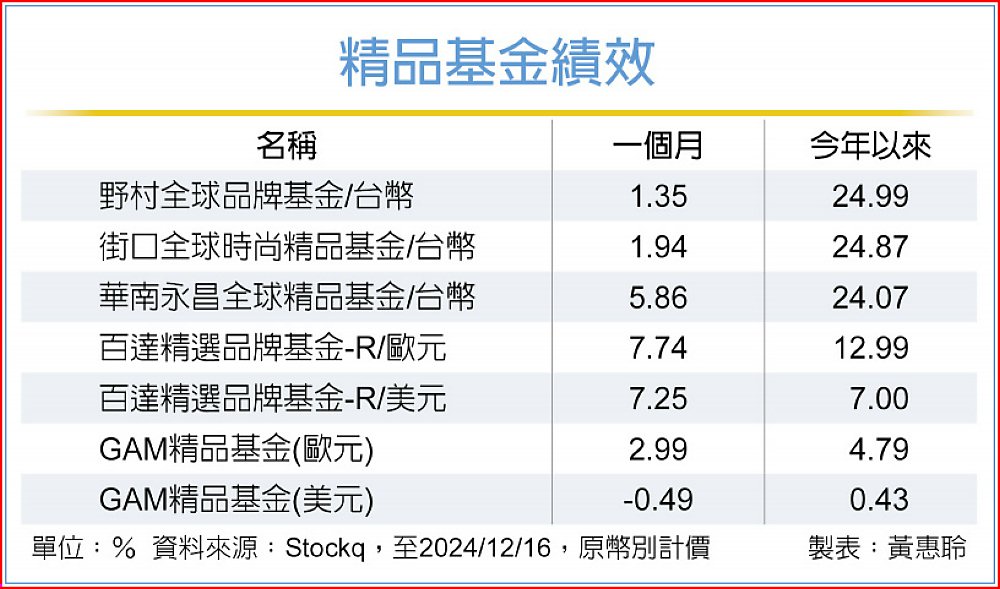 展望2025年,看好精品類股表現。主要是因為未來一年市場對於通膨與利率的預期都是持續往下降,另美國總統川普當選之後帶來的財富效應與減稅措施,可望對消費帶來正面影響。