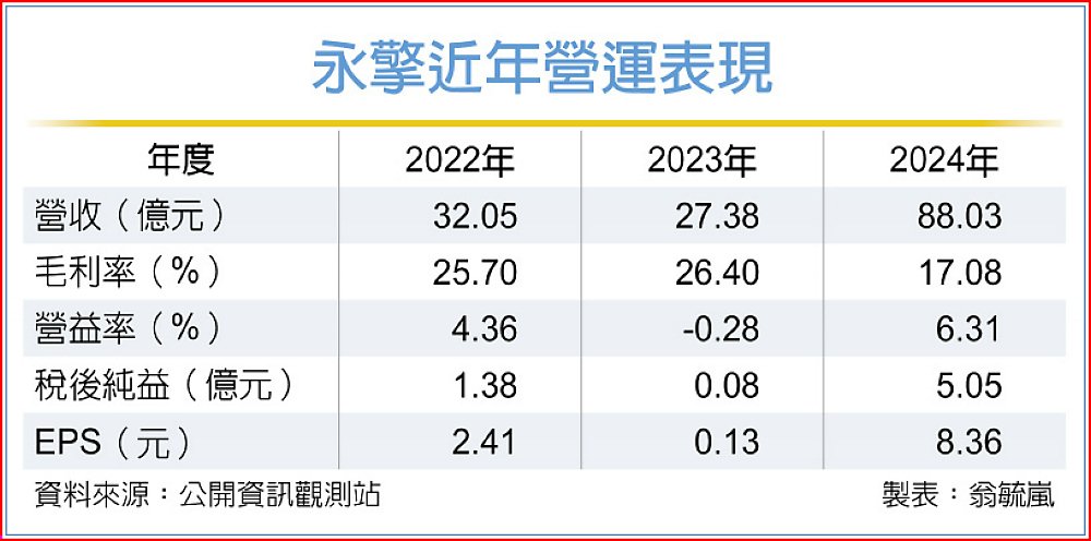 永擎去年度營收年增逾221%、達88.03億元,毛利率、營益率分別為17.08%、6.31%,獲利寫下新高之際,EPS也突破8元、同創高。