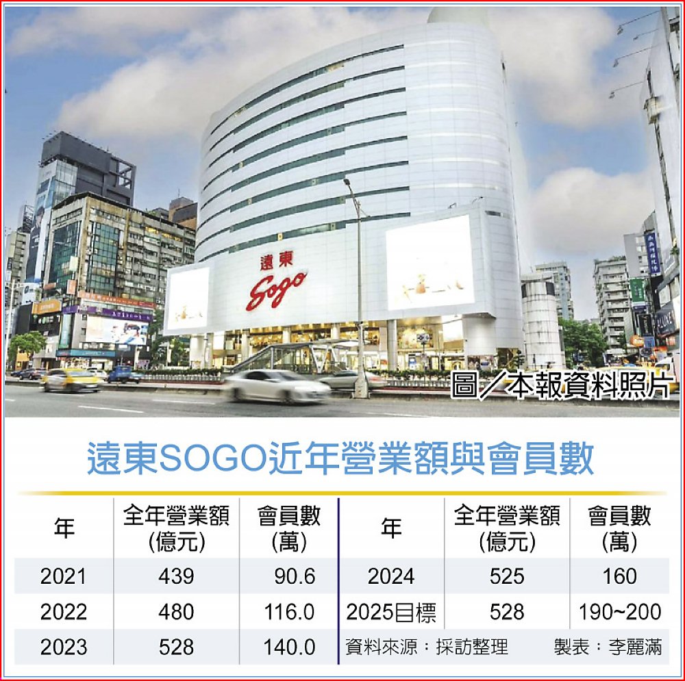遠東SOGO去年業績達525億元、年增1%,今年目標設定成長1%、約528億元;今年主力是大巨蛋Garden City全區開幕,以及SOGO復興館精品大規模改裝,SOGO APP會員也設定衝刺200萬目標。遠東SOGO大巨蛋Garden City在去年陸續開出C區、D區後,高達80%為新客,更有4成是40歲以下族群,今年第二季接著有影城開幕,還有星空餐廳登場,第四季購物中心全面完工,預計2026全年可帶來逾百億元業績挹注。