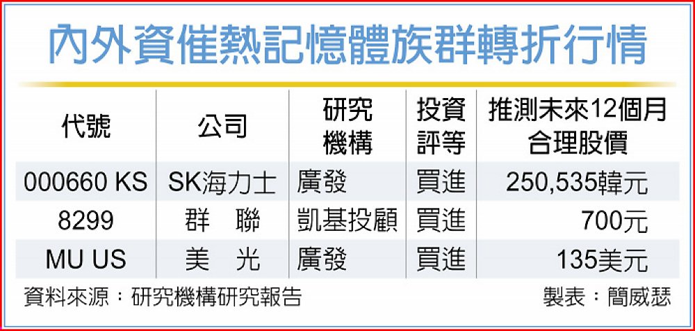 廣發證券賦予美光、SK海力士的目標價,則各為135美元、250,535韓元。