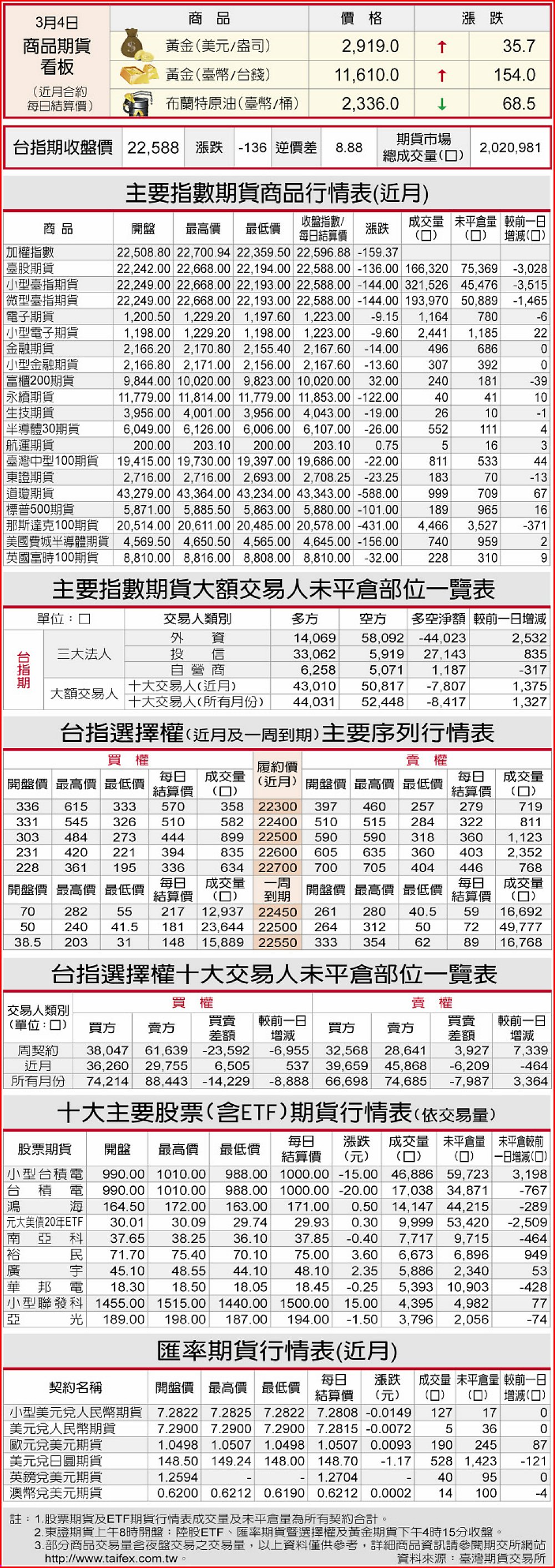 期貨商品行情表
