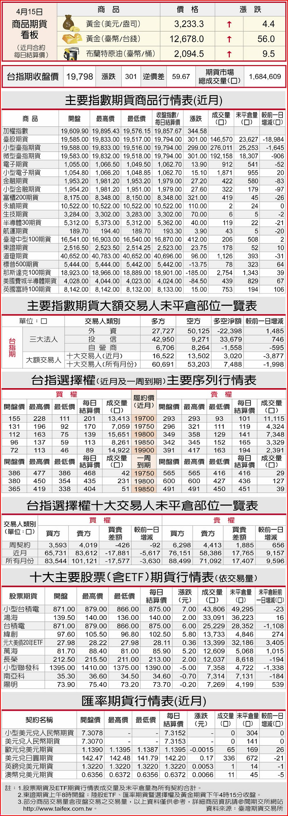 期貨商品行情表