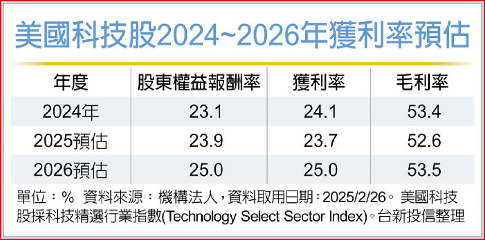 台新投信指出,就美國科技股長線趨勢分析,隨著川普對進口產品徵收高額關稅,不少企業陸續將供應鏈遷往美國境內,目前台積電位於美國亞利桑那州鳳凰城的廠房,已生產最新一代的輝達晶片,同時與鴻海、緯創合作,在德州設立超級電腦製造廠,預計在未來12個月至15個月內啟動量產,在科技業回流美國製造下,美國科技股持續掌握優勢地位。
