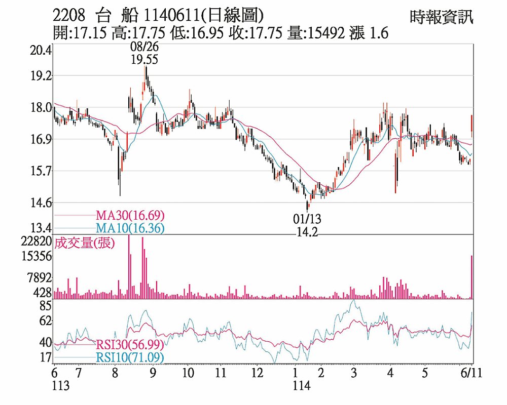 台船(2208)加權指數1140611(日線圖)