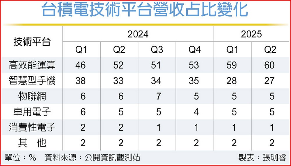 台積電迎來AI成長黃金期!隨2奈米製程進入量產,成長動能將由HPC貢獻。業者認為,2026年除手機大廠將使用台積電2奈米外,AMD以2奈米打造的HPC(高效能運算)晶片也將於明年登場;面對競爭,供應鏈消息直指輝達已考慮導入最先進製程,也就是台積電明年下半年量產的A16(擁有晶背供電版本的2奈米製程),這將是由AI應用第一次主導台積電最先進製程的重要轉折。