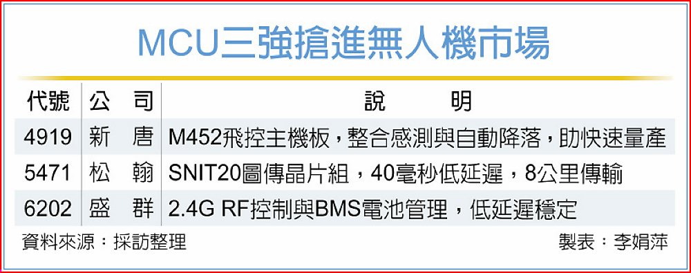 新唐、盛群與松翰的積極布局,將成為台灣切入龐大無人機商機的重要推手。