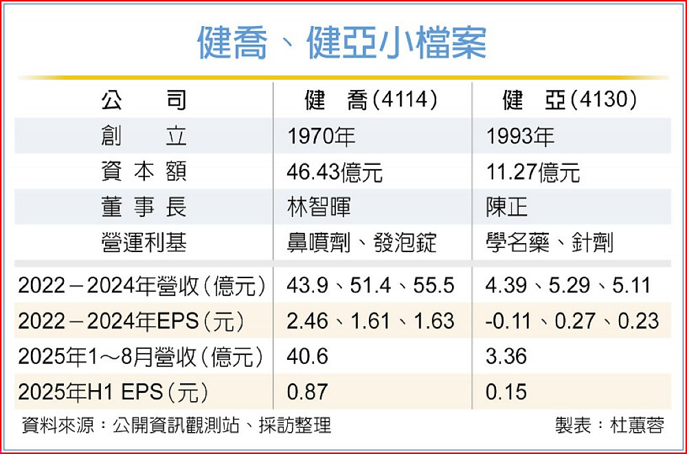 健喬表示,期望透過此次收購促進並深化與健亞的長期合作,共同建立台灣藥品供應韌性,再逐步延伸擴展亞洲為主之海外市場。