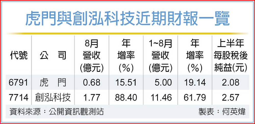 虎門(6791)與創泓(7714)本周將參加台北國際航太暨國防工業展,虎門推出太空工程全方位解決方案,創泓則將展示AI影像辨識、AI語音辨識及智慧雲台影像辨識方案等產品。