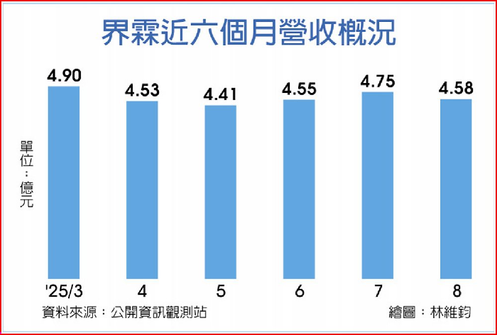 界霖先前指出,下半年新產品效益可期,尤其在金屬精密沖壓、異型材製造、局部電鍍、表面粗化及精密模具設計等技術基礎上,成功開發出鐵鎳合金導熱新品,不僅具備抗電磁波特性,更能滿足航太領域高可靠度需求。今年相關業務將逐步放量,成為營運成長新動能。